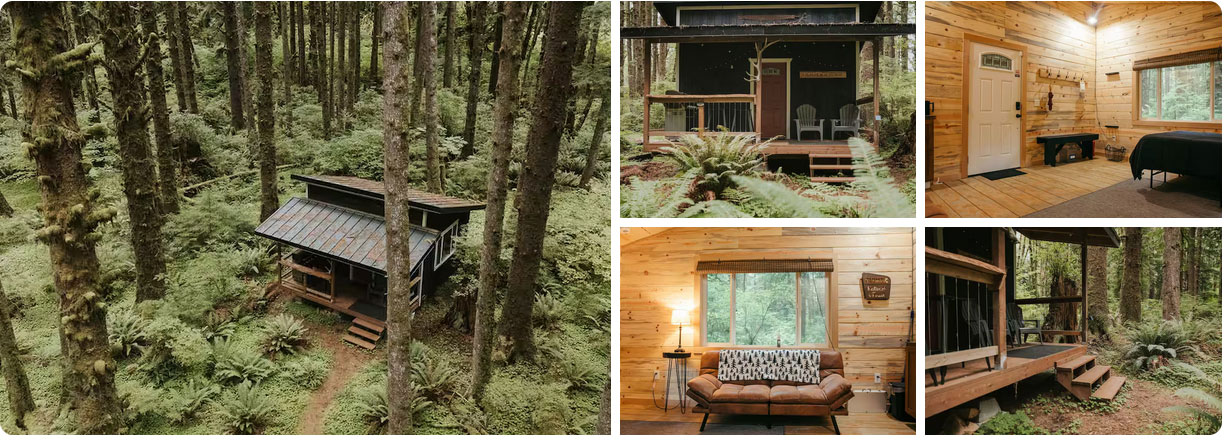 Escape to a charming off-grid,without power or water studio bungalow in a gated, private evergreen forest. Enjoy serene trails through the woods and access to the pristine Bogachiel River. Click to view.