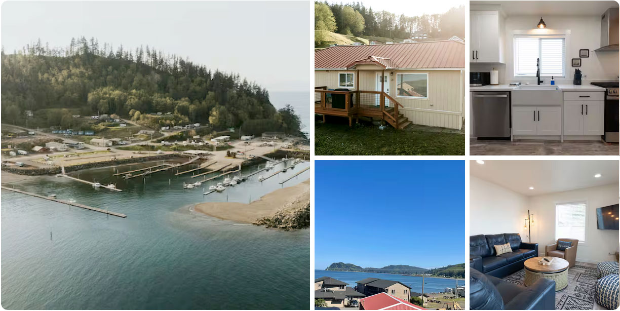 Enjoy stunning views of the Strait of Juan de Fuca from this 2BR/1BA home just steps from the marina. Features include a new kitchen, deck with BBQ, queen bed, two twins, pull-out couch, games, dining area, Wi-Fi, and more. Watch eagles soar and boats pass by—perfect for families, fishers, and adventurers! Click to view.