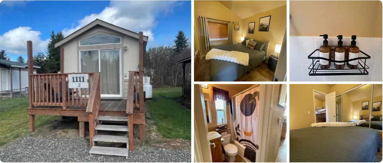 Newly remodeled modern studio featuring a comfortable queen bed, full bathroom with barn door, mini-split heating & cooling, mounted TV, and closet space. Clean, bright, and thoughtfully designed for a simple, relaxing stay. Located near Olympic National Park, local beaches, downtown Forks, and Forks Community Hospital. Perfect for solo travelers, couples, or travel professionals. Click to view.